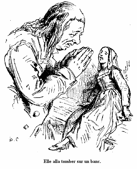 Jean partit lestement. Hélène resta à la porte et le regarda marcher: quand elle ne le vit plus, elle rentra, joignit les mains avec un geste de désespoir, tomba à genoux et s'écria d'une voix entrecoupée par ses larmes: