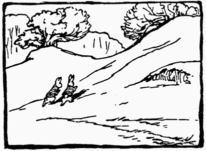 Cottontail had seen Tommy Brock passing in the distance. Asked whether her husband was at home she replied that Tommy Brock had rested twice while she watched him.[Pg 29]