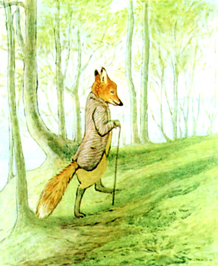 Mr. Tod slapped his stick upon the earth and fumed; he guessed where Tommy Brock had gone to. He was further annoyed by the jay bird which followed him persistently. It flew from tree to tree and scolded, warning every rabbit within hearing that either a cat or a fox was coming up the plantation. Once when it flew screaming over his head—Mr. Tod snapped at it, and barked.