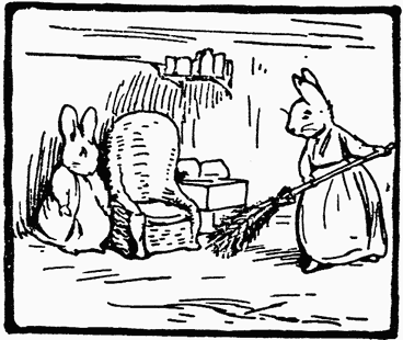 Mr. Bouncer would not confess that he had admitted anybody into the rabbit hole. But the smell of badger was undeniable; and there were round heavy footmarks in the sand. He was in disgrace; Flopsy wrung her ears, and slapped him.