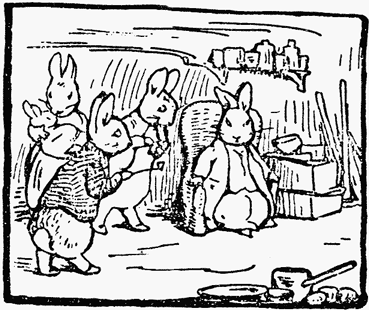No person was to be seen, and no young rabbits. The kitchen was empty and silent; the clock had run down. Peter and Benjamin flattened their noses against the window, and stared into the dusk.
