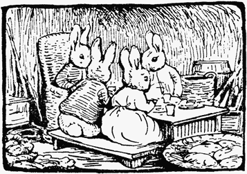 So old Mr. Bouncer laughed; and pressed Tommy Brock to come inside, to taste a slice of seed-cake and "a glass of my daughter Flopsy's cowslip wine." Tommy Brock squeezed himself into the rabbit hole with alacrity.[Pg 15]