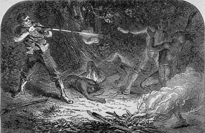 Trials of the Colonists.—George Boone and his home.—Squire Boone.—Birth and character of Daniel Boone.—His limited education.—A pioneer's camp.—A log house and furnishings.—Annoyance of Boone on the arrival of Scotch emigrants.—His longings for adventure.—Camp meetings.—Frontier life.—Sports.—Squirrel hunting.—Snuffing the candle. 36