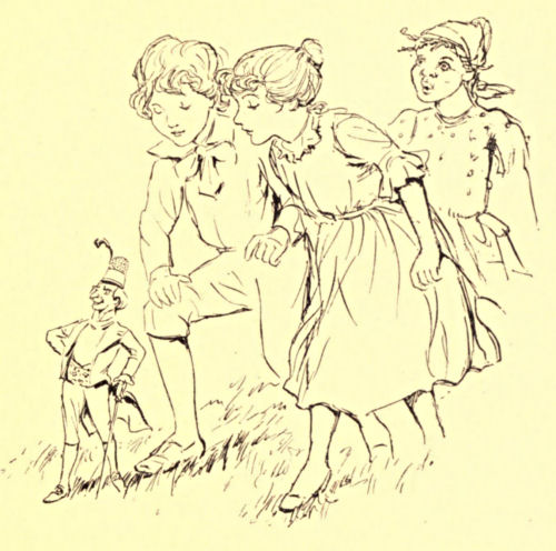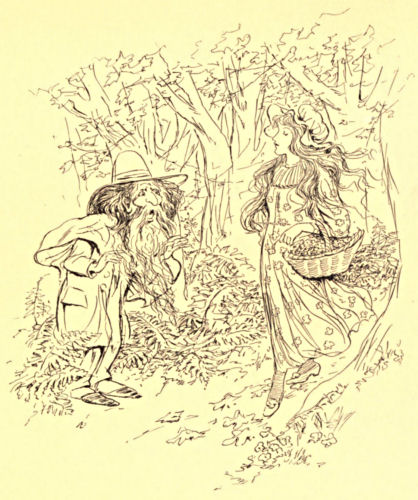 It was the queerest little voice that ever was heard. It had a tinkling sound, such as Susan had often made when she tied her mother’s gold thimble to a string and struck it with a knitting-needle. Just as she was wondering where it came from, a little old woman stepped from behind one of the andirons and shook the ashes from her dress.