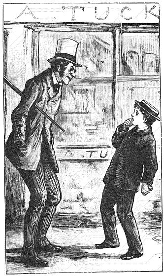“Well, why don’t you, you avaricious young Jew? You’re under seventeen, I suppose?” retorted the amiable Mr Bullinger, thereby raising a laugh at the expense of this little boy of eleven, who retired from the scene extinguished.