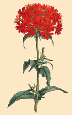 The Scarlet Lychnis appears to have been a great favourite with Parkinson, he calls it a glorious flower, and in a wooden print of him prefixed to his Paradisus Terrestris, we see him represented with a flower of this sort in his hand of the double kind.