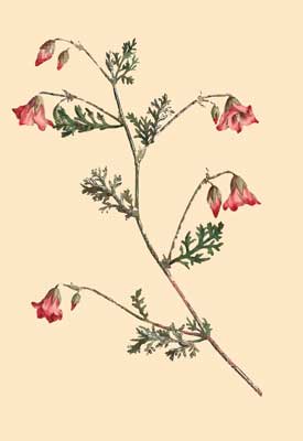 It was not till long after our description was taken, that we had an opportunity of seeing Mons. Cavanille's most accurate and elegant work, above quoted, in which this plant is first figured and described; we have selected the most essential parts of his generic character, and adopted his specific description: there is one point, however, in which we differ from him; the part which he regards as the fifth Petal, we are inclined to consider rather as that indescribable something, called by Linnæus the Nectary, it is indeed of little moment whether we call it a Petal or a Nectary, but there are several reasons why, strictly speaking, we cannot regard it as a Petal: in general the number of Petals correspond with the number of the leaves of the Calyx, those of the latter are four; the base of this Nectary originates deeper than the claws of the Petals, springing in fact from the same part as the Filament, its structure, especially the lower part of it, is evidently different from that of the Petals, corresponding indeed as nearly as possible with that of the base of the filament.—Vid. Descer.