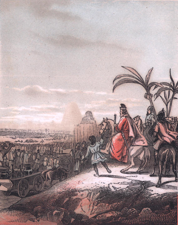 to Abram. With Sarai he journeyed on among the hills, encamping at night