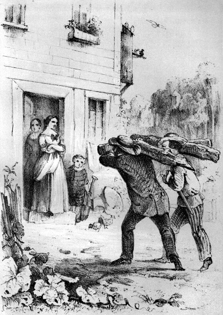 »Aha?« sagte sein Wirth, der, als er das Geräusch hörte, langsam den Kopf nach ihm wandte, »hatt' ich recht? — die Füße fangen Einem gewöhnlich Nachts an zu frieren, wenn sie den Tag über naß waren; der Sack wird sie schon warm halten.«