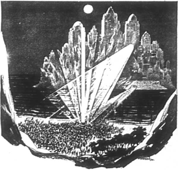 Neither of us would ever forget that slim white creature, swathed in her veil of long, light golden hair, as she crouched on the bottom of Mercer's swimming pool, and pictured for us, by means of Mercer's thought-telegraph (my own name for the device; he has a long and scientific title for it with as many joints as a centipede), the story of her people.