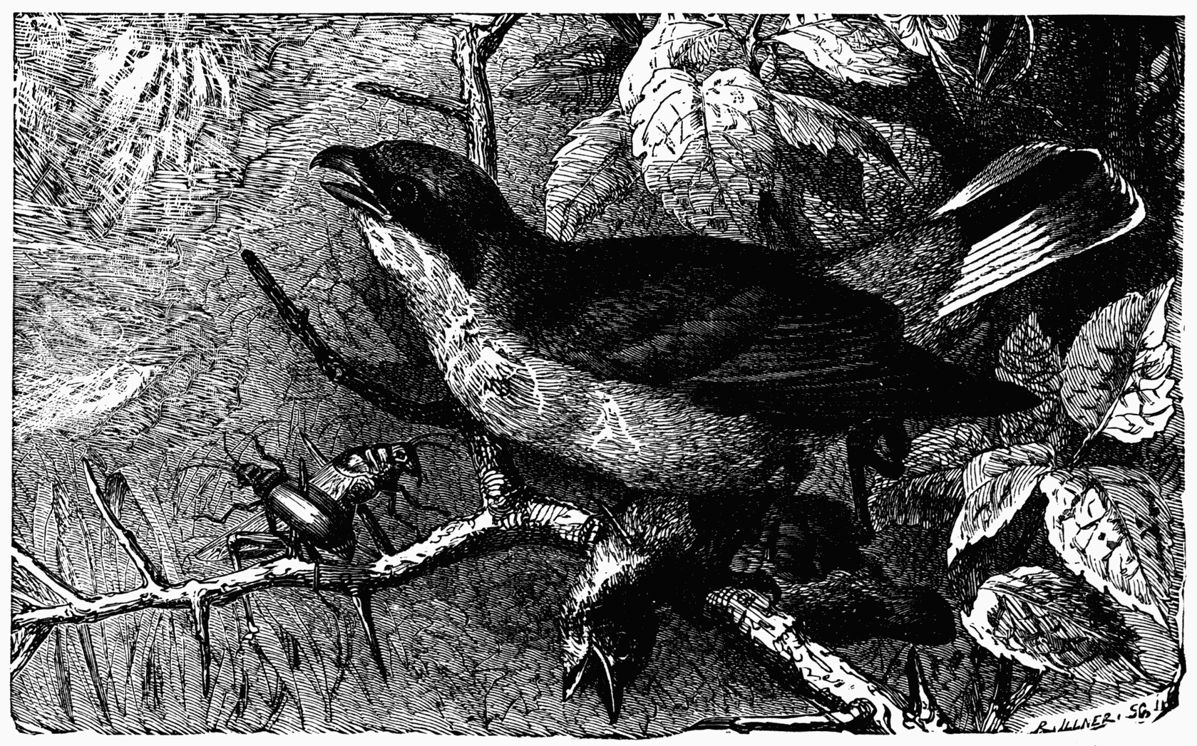 On land exactly the same kind of chase is carried on by Rooks, Crows, and Magpies, who follow the plough to seize the worms which the ploughshare turns up in the open earth. In autumn they cover the fields, animated and active, pilfering as the furrow is hollowed out.