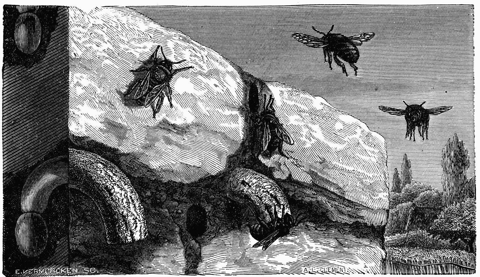 And, from another side, if nothing is more instinctive than the manner in which domestic Bees construct their cells of wax with geometric regularity, there are other circumstances in which these same insects give proof of remarkable reflection, sagacity, and intelligence in co-ordinating their actions in the presence of an event to which they are not accustomed, and in attaining an end which has presented itself by accident. Such are, for example, the arrangements which they make to defend their honey against the attacks of a great nocturnal Moth, the Death’s Head. I shall have to revert to these facts.