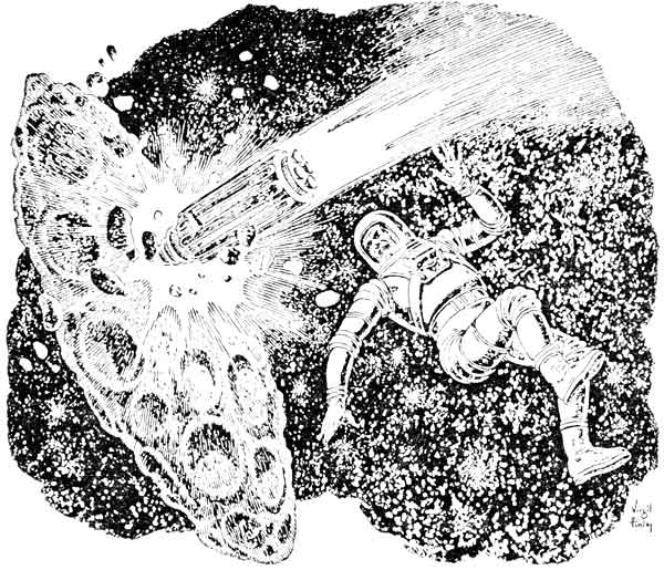 A few days after Willy had finished installing the drive unit in his asteroid, a small company speedster came to a near-halt at the outer fringes of our section of the asteroid belt. For the next eighty hours it felt its way by radar through the belt, dodging and going around the larger bodies, and slowing its speed whenever it became necessary to shoulder its way through masses of smaller debris and dust.