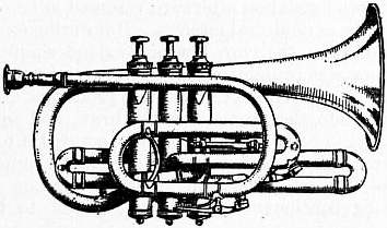 COR ANGLAIS, or English Horn (Ger. englisches Horn or alt Hoboe; Ital. corno inglese), a wood-wind double-reed instrument of the oboe family, of which it is the tenor. It is not a horn, but bears the same relation to the oboe as the basset horn does to the clarinet. The cor anglais differs slightly in construction from the oboe; the conical bore of the wooden tube is wider and slightly longer, and there is a larger globular bell and a bent metal crook to which the double reed mouthpiece is attached. The fingering and method of producing the sound are so similar in both instruments that the player of the one can in a short time master the other, but as the cor anglais is pitched a fifth lower, the music must be transposed for it into a key a fifth higher than the real sounds produced. The compass of the cor anglais extends over two octaves and a fifth: