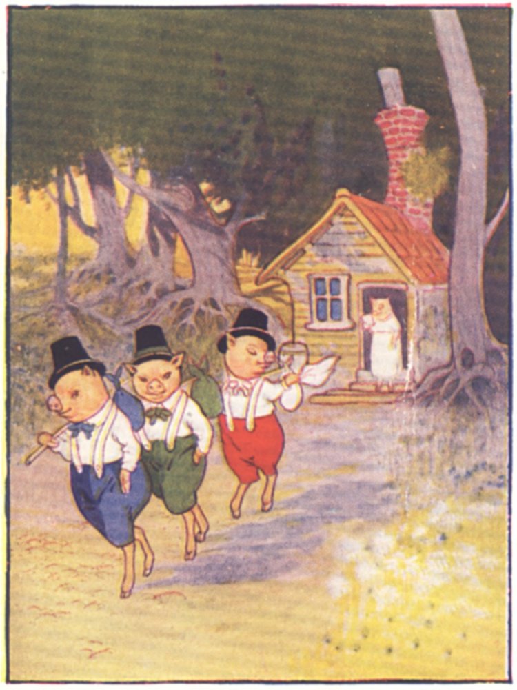 Once upon a time there was an old pig with three little pigs, and, as she had not enough to keep them, she sent them out to seek their fortunes.