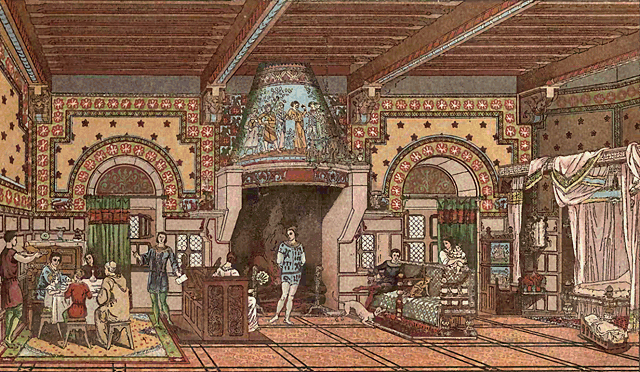 In the hall of the castle thus rudely furnished the inmates lived a large part of their lives. There the household assembled for meals. There the minstrel, if one chanced to be present, recited his romance. There the lord in person, or his seneschal or baillie, held his court to administer justice. It was the common room of the house, and usually contained all there was in the way of decoration. Comfort even here was hardly to be found; one can fancy that the fire on the open hearth gave out more smoke than heat, and the windows, often entirely unglazed and ill-fitting, let in more cold than light.