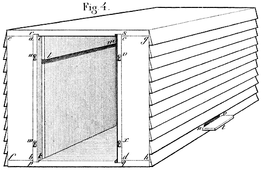 Schriftelijk wendde ik mij tot Von Berlepsch, die zich uitsluitend met de bijenteelt bezighoudt, en dit alleen doet uit liefde voor de zaak, daar hij een zeer vermogend man is. Spoedig ontving ik een vriendelijk antwoord, waarin hij mij met de groote, in de laatste jaren in Duitschland gemaakte, vorderingen bekend maakte, welke hoofdzakelijk het gevolg waren van eene nieuwe soort van bijenwoningen, door Dzierzon, Predikant te Carlsmarkt in Silezië, uitgevonden, en in 1845 door hem algemeen bekend gemaakt. In deze woningen kan men het werk der bijen, even als de bladen van een boek, openslaan en haar leven en zijn op het naauwkeurigst [4]gadeslaan. Door de toezending van eene zoodanige woning, stelde hij mij tevens in staat, mij van hare doelmatigheid te overtuigen.