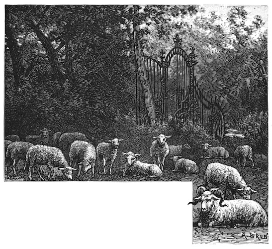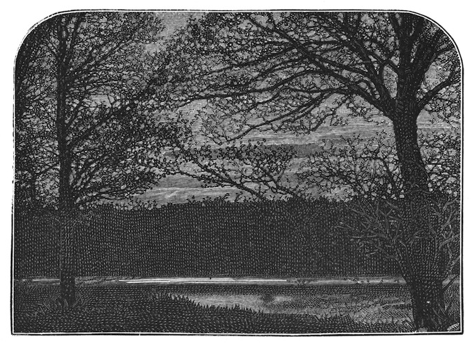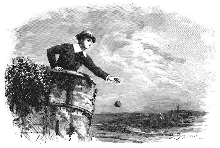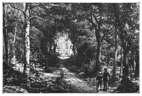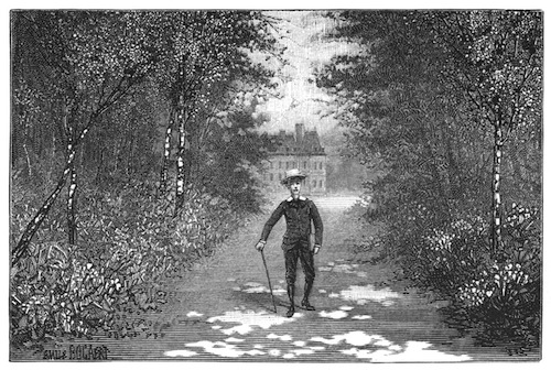 The servant retired, and soon returned with a tray containing the order. The gentleman poured out a little vermouth and seltzer water, then rolled a cigarette, lighted it, and, leaning back upon the rounded seat of the green bench, looked with pleasure at the lovely scene around him. On the left, in a small lake framed in the green lawn, was reflected one wing of the old château, as in a mirror. The bricks, whose colors were lighted up by the sun, seemed to be burning in the midst of the water. The large lawn began at the end of a gravelled walk, and seemed to be without limit, for the park merged into cultivated ground, and verdant hills rose over hills. There was not a cloud in the sky.