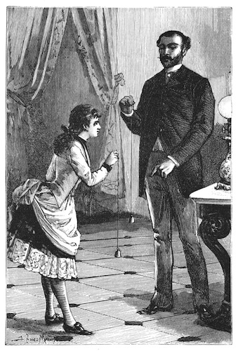 When he was alone, Monsieur Dalize reread the welcome despatch. Then he turned around, and looked towards a window on the second floor of the château, whose blinds were not yet opened. From this window his looks travelled back to the telegram, which seemed to rejoice his heart and to give him cause for thought. He was disturbed in his reverie by the noise of two blinds opening against the wall. He rose hastily, and could not withhold the exclamation,—