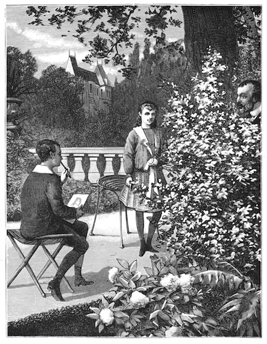 The door of the château opened, and a gentleman lightly descended the threshold. He was in his slippers and dressing-robe, and under the dressing-robe you could see his night-gown. After having thrown a satisfied look upon the beauty of nature, he approached the green seat, and seated himself before the stone table. An old servant came up and said,—