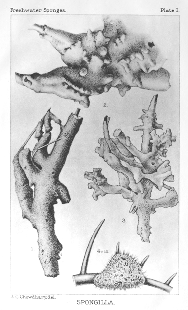 Figs. 1-3. | S. (Euspongilla) alba var. bengalensis (nat. size) from ponds of brackish water at Port Canning in the delta of the Ganges. Fig. 1 represents the type-specimen of the variety, and was taken in the winter of 1905-6. Figs. 2 and 3 represent specimens taken in the same ponds in the winters of 1907 and 1908 respectively. |