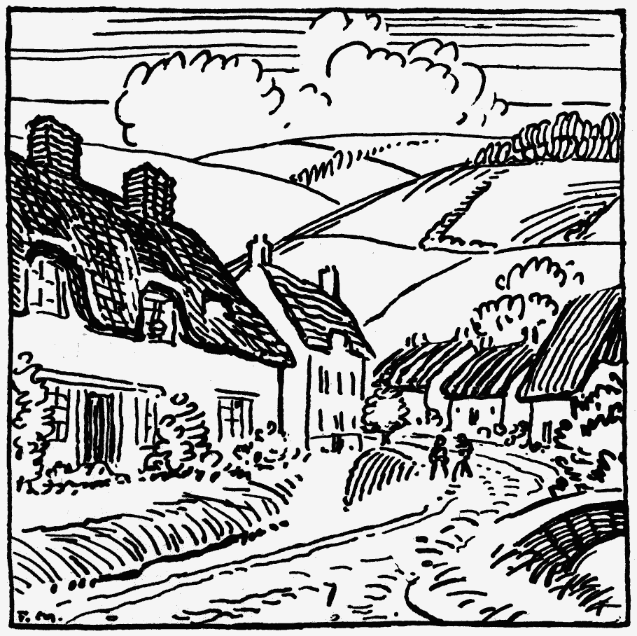 I wish to see reapers at work in Surrey fields, to stride over the windy top of Devon, to cross Wiltshire when wind and rain and mist have brought the Druids back to Stonehenge. At a crossroad Stratford is ten miles off. Raglan's ancient towers peep from a wooded hill. Tintern or Glastonbury can be gained by night. Are not these names sweet upon the tongue? And I wish a black-timbered inn in which to end the day—with polished brasses in the tap and the smell of the musty centuries upon the stairs.