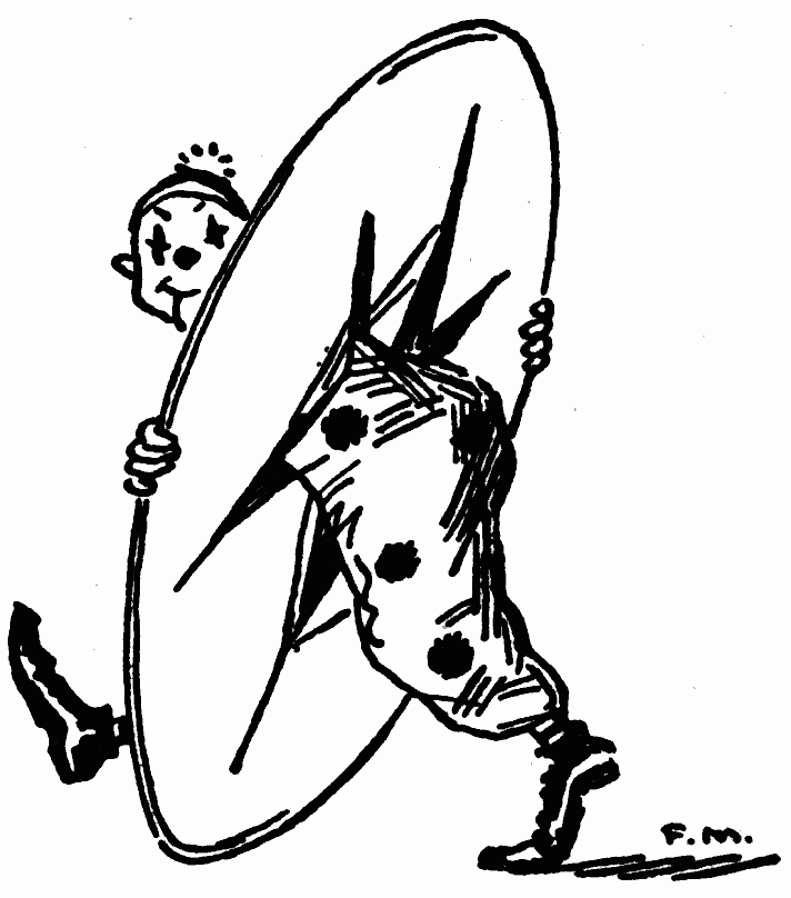A room's use changes with the clock. That girl who lives opposite, when she is dressed in the morning, puts a Bagdad stripe across her couch. She punches a row of colored pillows against the wall. Her bedroom is now ready for callers. It was only the other day that I read of a new invention by which a single room becomes four rooms simply by pressing a button. This is the manner of the magic. In a corner, let us say, of a rectangular room there is set into the floor a turntable ten feet across. On this are built four compartments, shaped like pieces of pie. In one of these is placed a bath-tub and stand, in another a folding-bed and wardrobe, in a third is a kitchen range and cupboard, and in the fourth a bookcase and piano. Must I explain the mystery? On rising you fold away your bed and spin the circle for your tub. And then in turn your stove appears. At last, when you have whirled your dishes to retirement, the piano comes in sight. It is as easy as spinning the caster for the oil and vinegar. A whirling Susan on the supper table is not more nimble. With this device it is estimated that the population of our snug island can be quadruplicated, and that landlords can double their rents with untroubled conscience. Or, by swinging a fifth piece of pie out of the window, a sleeping-porch could be added. When the morning alarm goes off you have only to spin the disk and dress in comfort beside the radiator. Or you could—but possibilities are countless.