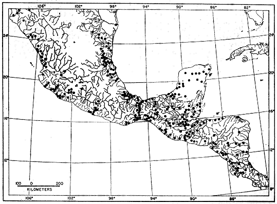 Distribution of genus.—Most of lowlands of México and Central America, in some places to elevations of nearly 2000 meters, southward from southern Sonora and Río Grande Embayment of Texas, including such continental islands as Isla Cozumel, México, and Isla Popa and Isla Cebaco, Panamá, to northern South America, where known from Caribbean coastal regions and valleys of Río Cauca and Río Magdalena in Colombia, and Pacific slopes of Colombia and northern Ecuador.