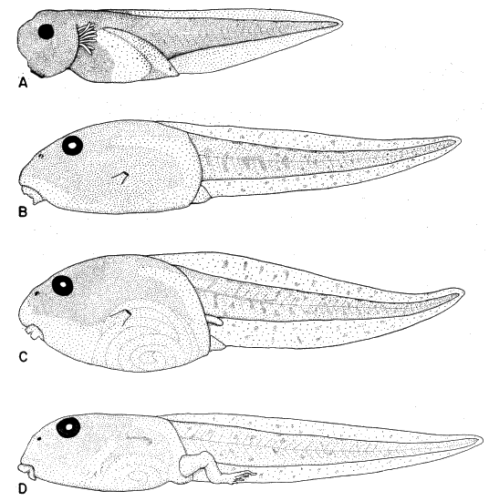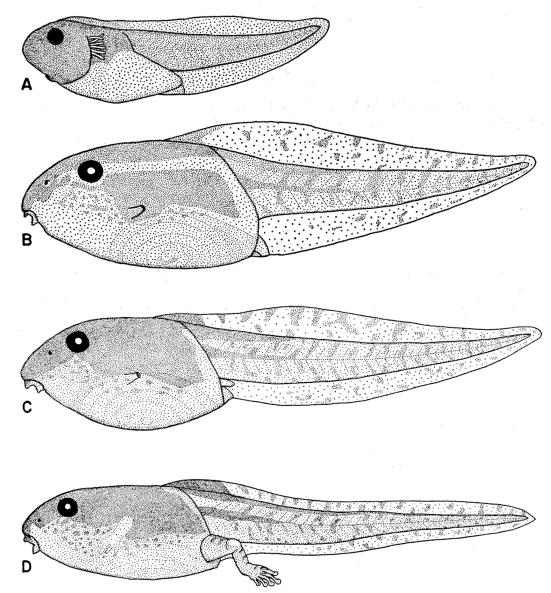 | 1. | Pond tadpoles; tail about half again as long as body; mouth anteroventral |