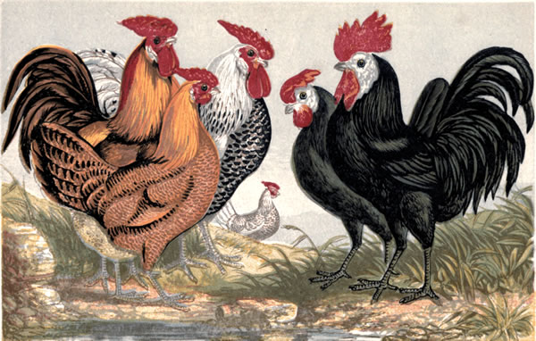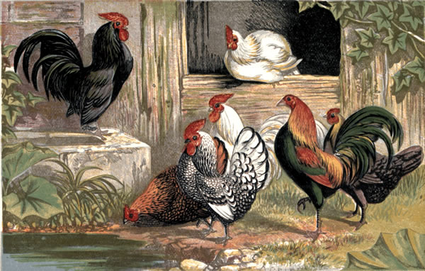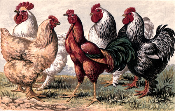 Barn-door fowl are a mongrel race, compounded by chance, usually of the Game, Dorking, and Polish breeds.