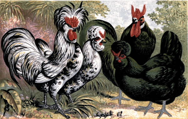 French: Houdans—La Flêche Cock—Crêve-Cœur Hen. | ||