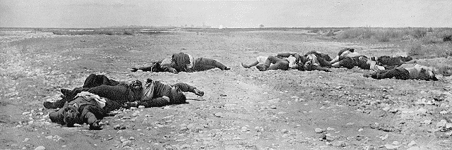 Mais voici l'armée grecque!... Les cadavres restent, les assassins s'enfuient. Et le blessé raconte: «Après la première blessure, j'ai fait le mort. Quand ils sont partis, je me suis levé: les soldats grecs étaient là.»