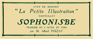 1° LA PETITE ILLUSTRATION, Série-Théâtre n° 14: Sophonisbe, de M. Alfred
