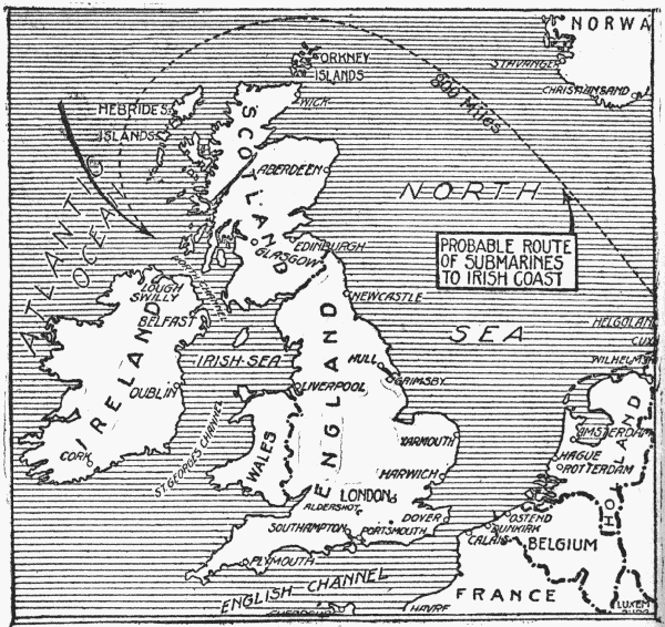 [pg 6] Directly in front of them stood the grey automobile drawn up by the roadside before a pair of iron gates. The gates swung from high stucco walls. On top of the walls were soldiers sitting, rifle on knee; a machine gun commanded the drive, and across the gravel more soldiers were digging a trench, setting posts, and stringing barbed wire which they unwound from great wooden reels.