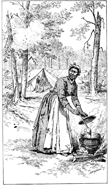 I must stop a moment and give our Eliza, on whom this battle was waged, a little space in this story, for she occupied no small part in the events of the six years after; and when she left us and took an upward step in life by marrying a colored lawyer, I could not reconcile myself to the loss; and though she has lived through all the grandeur of a union with a man "who gets a heap of money for his speeches in politics, and brass bands to meet him at the stations, Miss Libbie," she came to my little home not long since with tears of joy illuminating the bright bronze of her expressive face. It reminded me so of the first time I knew that the negro race regarded shades of color as a distinctive feature, a beauty or a blemish, as it might be. Eliza stood in front of a bronze medallion of my husband when it was first sent from the artist's in 1865, and amused him hugely, by saying, in that partnership manner she had in our affairs, "Why, Ginnel, it's jest my color." After that, I noticed that she referred to her race according to the deepness of tint, telling me, with scorn, of one of her numerous suitors: "Why, Miss Libbie, he needent think to shine up to me; he's nothing but a black African." I am thus introducing Eliza, color and all, that she may not seem the vague character of other days; and whoever chances to meet her will find in her a good war historian, a modest chronicler of a really self-dying and courageous life. It was rather a surprise to me that she was not an old woman when I saw her again this autumn, after so many years, but she is not yet fifty. I imagine she did so much mothering[26] in those days when she comforted me in my loneliness, and quieted me in my frights, that I counted her old even then.