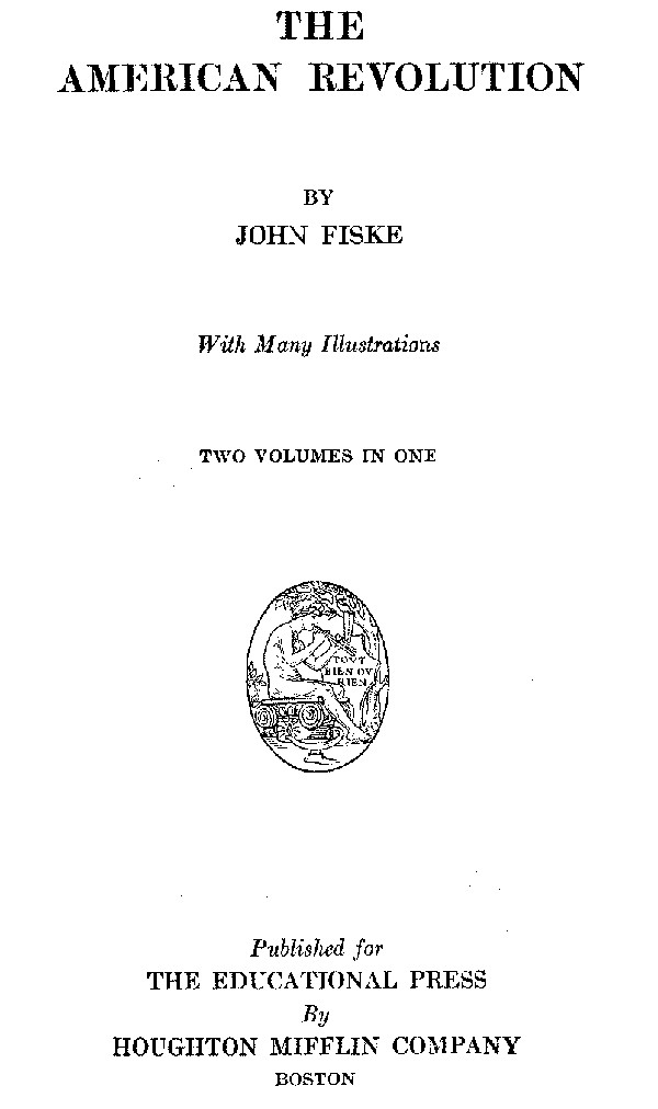 The Project Gutenberg EBook of The American Revolution, by John Fiske This eBook is for the use of anyone anywhere at no cost and with almost no restrictions whatsoever. You may copy it, give it away or re-use it under the terms of the Project Gutenberg License included with this eBook or online at www.gutenberg.org Title: The American Revolution Author: John Fiske Release Date: November 2, 2012 [EBook #41266] Language: English Character set encoding: ISO-8859-1 *** START OF THIS PROJECT GUTENBERG EBOOK THE AMERICAN REVOLUTION *** Produced by Charlene Taylor, KD Weeks, Charles Franks and the Online Distributed Proofreading Team at http://www.pgdp.net