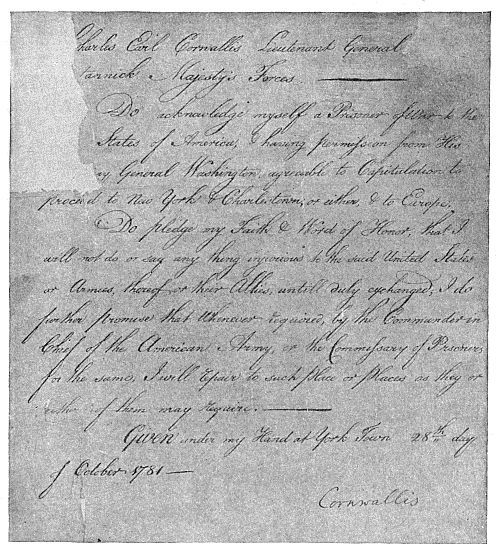 [45] In using such a word as “gratitude” in this connection, one should not forget that the purposes of France, in helping us, were purely selfish. The feeling of the French government toward us was not really friendly, and its help was doled out with as niggardly a hand as possible. An instance of this was furnished immediately after the surrender of Yorktown, when Lafayette proposed to Grasse a combined movement upon Charleston in concert with Greene, but Grasse obstinately refused. See Harvard University Library, Sparks MSS. Such a movement promised success, though it might have entailed a battle with the British fleet. But Grasse was faithful to the policy of Vergennes, to help the Americans just enough, but not too much. This policy is discussed in my Critical Period of American History, chap, i., “Results of Yorktown,” in which the story is continued from the present chapter.
