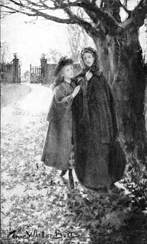 Mr. Leicester was walking across the fields by a path he well knew from the little station, with a friend and fellow guest whom they had met at Durham. This path was much shorter than the road, so that papa was sure of reaching the house first; but Betty felt a little lonely, being tired, and shy of meeting a great bright houseful of people quite by herself, in case papa should loiter. But suddenly the carriage stopped, and the footman jumped down and opened the door. "My lady is walking down to meet you, miss," he said; "she's just ahead of us, coming down the avenue." And Betty flew like a pigeon to meet her dear friend. The carriage drove on and left them together under the great trees, walking along together over the beautiful tracery of shadows. Suddenly Lady Mary felt the warmth of Betty's love for her and her speechless happiness as she had not felt it before, and she stopped, looking so tall and charming, and put her two arms round Betty, and hugged her to her heart.