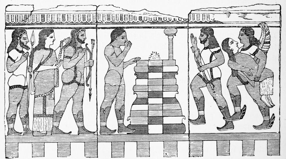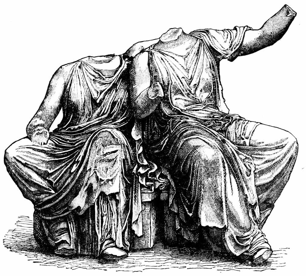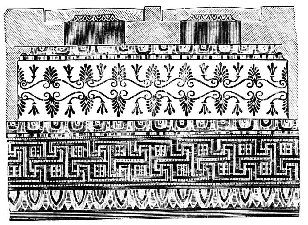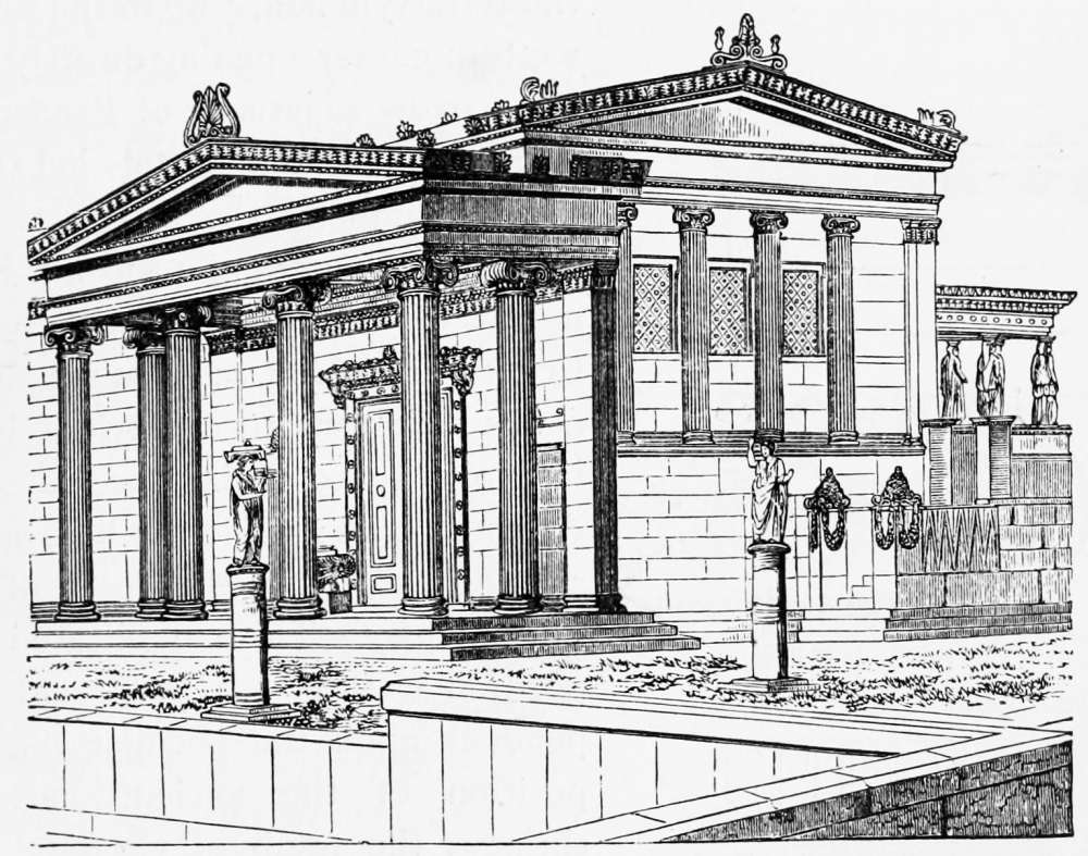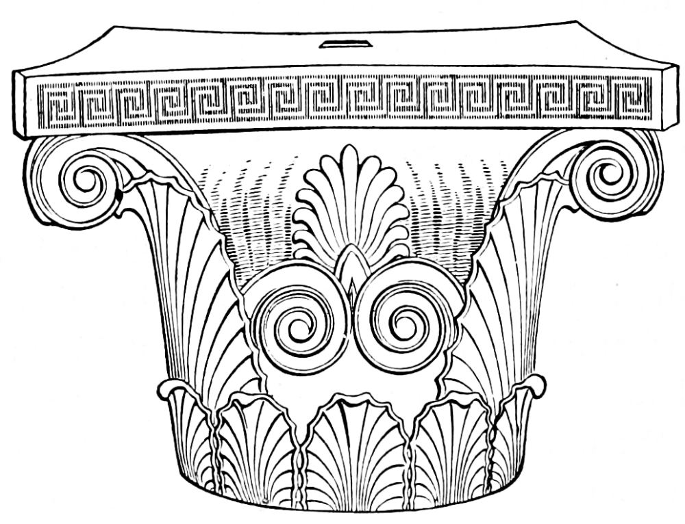 In view of the great confusion which results from an irregular orthography of Greek proper names, a return to the original spelling of words not fully Anglicized may need an explanation, but no apology: it is only adopting a system already followed by scholars of the highest standing. The Romans, until the advent of that second classical revival in which the present century is still engaged, served as mediums for all acquaintance with Hellenic civilization. They employed Greek names, with certain alterations agreeable to the Latin tongue, blunting and coarsening the delicate sounds of Greek speech, much in the same manner as they debased the artistic forms of Greek architecture by a mechanical system of design. The clear ον became um, ος was changed to us, ει to e or i, etc. This Latinized nomenclature, like the Roman triglyph and Tuscan capital, was exclusively adopted by the early Renaissance, until, with the increasing knowledge of Greek lands and works of art, names were introduced which do not happen to occur in the writings of Roman authors. These were either changed in accordance with the more or less variable standard in use during the sixteenth and seventeenth centuries, or were adopted in their Greek form without change, the latter method being more and more generally employed. This has gradually led to a partial revision of Greek names and their spelling. Zeus and Hermes, Artemis and Athene, have resumed, as Greek deities, their original titles;—Sunium and Assus have been changed to Sunion and Assos; while other names have only been reformed in part, as in the case of the unfortunate Polycleitos, who at times appears as Polycletos, and at times as Polycleitus. Confusion and misunderstanding cannot but result from this unreasonable triple system of Latinized, Anglicized, and Greek orthography. Peirithoos may be sought in alphabetically classified works of reference under Per and Pir as well as under Peir. Πέργαμον, Pergamon, is written Pergamum, Pergamus, and Pergamos, in the two latter forms being naturally confused with the Cretan Πέργαμος, Pergamos, which, in its turn, is Latinized to Pergamus. In the present book the Greek spelling of Greek names has been adopted in all those cases where the word has not been fully Anglicized; that is to say, changed in pronunciation, when it would sound pedantic to employ its original form, as, for instance, to speak of the well-known Pæstum and Lucian as Poseidonia and Loukianos. The English alphabet provides, however, two letters for the Greek κάππα, and the more familiar c has been employed, as in Corinth, acropolis, etc., except in cases where the true sound is not thereby conveyed,—namely, before e, i, and y,—when the k is substituted. Moreover, the final αι is transformed to æ, according to the universal usage of our tongue.