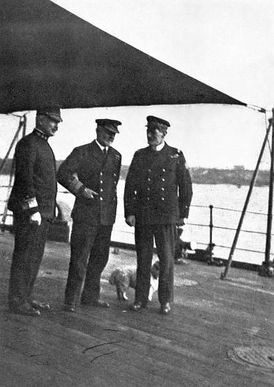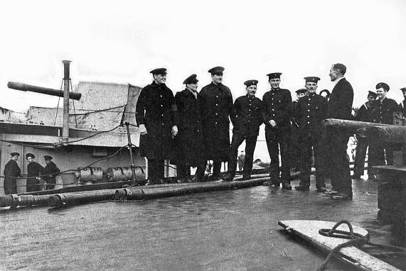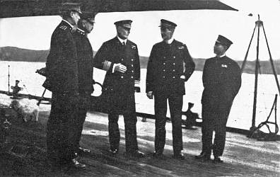 As soon as the last of the German officers had reached the quarter-deck and completed his round of heel-clicking salutes, the party was conducted directly to Admiral Browning's cabin, where the first of a series of conferences calculated deeply to influence Germany's naval future for many years to come was entered into without delay.