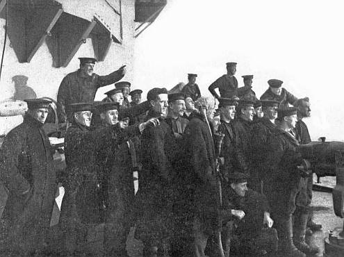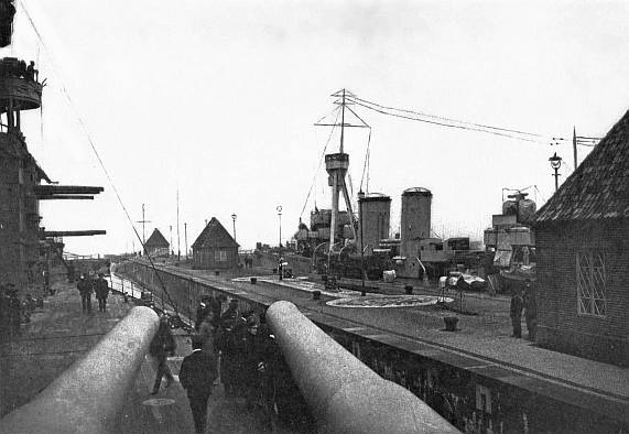 Asked bluntly, if the search of the warships could begin that afternoon, Admiral Goette replied that it was impossible, for the reason he was not yet in a position to guarantee the personal safety of any parties landing even at the dockyard. Moreover, he would not be in position to give such a guarantee until the matter had been discussed with the Workmen's and Soldiers' Council. Of course, if the party cared to take the chance of landing without a guarantee of safety—