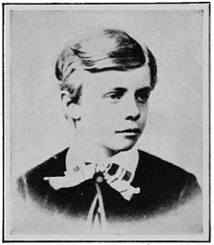 He had something else to fight against: bad health. He writes: "I was a sickly, delicate boy, suffered much from asthma, and frequently had to be taken away on trips to find a place where I[6] could breathe. One of my memories is of my father walking up and down the room with me in his arms at night, when I was a very small person, and of sitting up in bed gasping, with my father and mother trying to help me. I went very little to school. I never went to the public schools, as my own children later did."[1] For a few months he went to a private school, his aunt taught him at home, and he had tutors there.