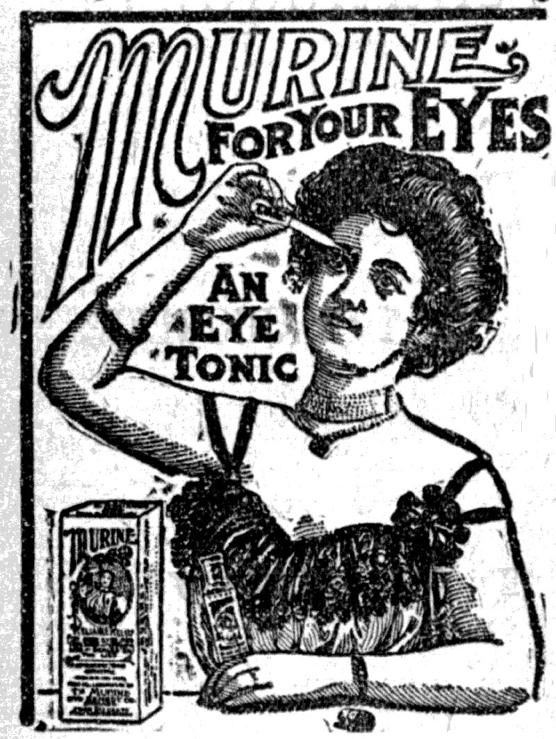 Murine is compounded in the Laboratory of the Murine Eye Remedy Co., Chicago, by Oculists, as used for years in Private Practice, and is Safe and Pleasant in its Application to the most Sensitive Eye, or to the Eyes of a nursing Infant. Doesn't Smart.