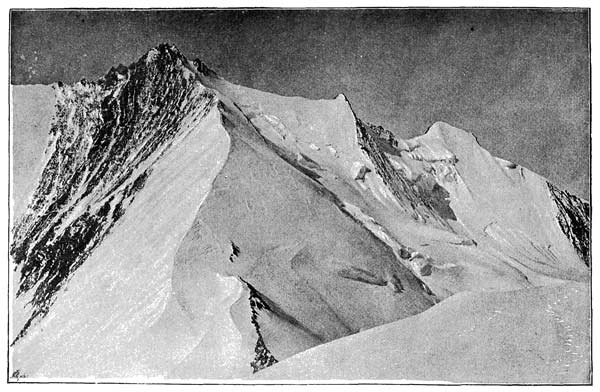 "Here may the eye, as it sweeps along the horizon, embrace a line of snowclad mountains such as exist in no other part of the world, stretching over one third of the entire circle, at a distance of forty or fifty miles, their peaks towering over a sea of intervening ranges piled one behind another, whose extent on either hand is lost in the remote distance, and of which the nearest rises from a gulf far down beneath the spectator's feet, where may be seen the silver line that marks a river's course, or crimson fields of amaranth and the dwellings of man. Sole representative of animal life, some great eagle floats high overhead in the pure dark-blue sky, or, unused to man, fearlessly sweeps down within a few yards to gaze at the stranger who intrudes among these solitudes of Nature. As the sun sinks, the cold grey shadow of the summit where we stand is thrown forward, slowly stealing over the distant hills, and veiling their glowing purples as it goes, carries the night up to the feet of the great snowy peaks, which still rise radiant in the rosy light above the now darkening world. From east to west in succession the splendour fades away from one point after another, and the vast shadow of the earth is rapidly drawn across the whole vault of heaven. One more departing day is added to the countless series which 12 has silently witnessed the deathlike change that passes over the eternal snows, as they are left raising their cold pale fronts against the now leaden sky; till slowly with the deepening night the world of mountains rises again, as it were, to a new life, under the changed light of the thousand stars which stud the firmament and shine with a brilliancy unknown except in the clear rarefied air of these sublime heights."