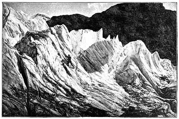In the neighbourhood of Monte Rosa there is a tradition that a valley exists in the heart of that mountain the entrance to which has been sealed up by impassable glaciers, though the floor of the "cirque" within is still a rich pasturage. In a certain valley they point out a 26 spring which bursts from the ground, as the outlet of the torrent by which it is watered. Once, said they, a chasseur found the bed of this stream dry, and creeping up its subterranean channel, arrived on the floor of the valley. It was a huntsman's paradise; chamois were there in plenty, bears also, and even bouquetins, wandering over the richest pastures. He retraced his steps to announce the good news; but when he returned again, the waters had resumed their course, and the place has ever since remained inaccessible.