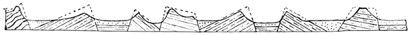 342 Having very little idea of the true structure of mountains, they believed them to consist of a kind of core, or axis, of this igneous rock, with sedimentary rocks sloping away from it on each side. This was a very simple theory of mountain-chains, but unfortunately it will not bear examination. It takes no notice of the folding which is so characteristic of mountain strata, and is quite out of agreement with the facts of the case; so it must be buried among the archives of the past. Mountain-chains are now known to have a much more complicated structure than this,—thanks to the labours of many subsequent observers.