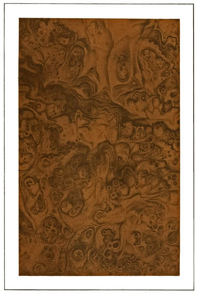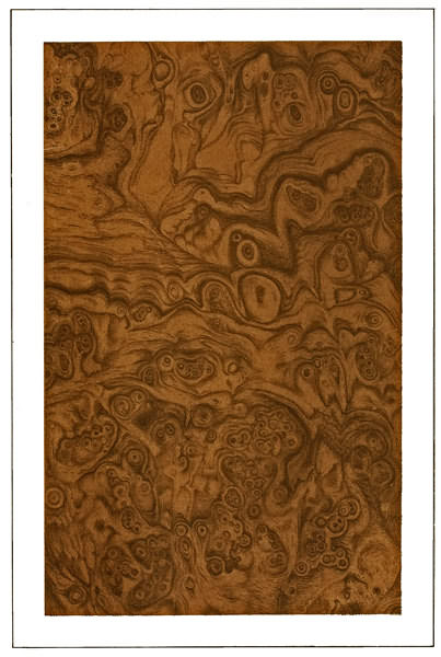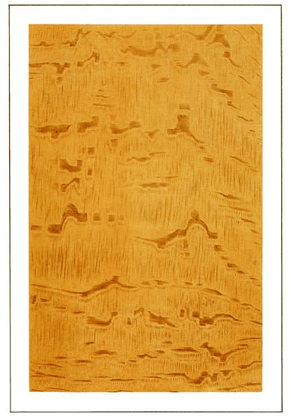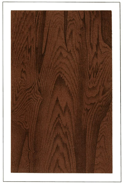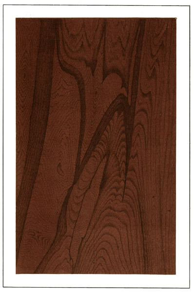 As the grains in rosewood run very irregularly (see illustration), great care must be maintained in combing, it being necessary in most cases to employ extremely coarse and fine combs; and at times it may be absolutely necessary to use a pencil, in bringing up this imitation to perfection, and all of the combing and pencilling must be blended down very 14 softly with a fine badger blender. For the glazing, the same colors may be used, though chiefly Vandyke brown and ivory-black, making the dark places principally from the latter, though, of course, all of these colors are to be made exceedingly thin and as transparent as possible.