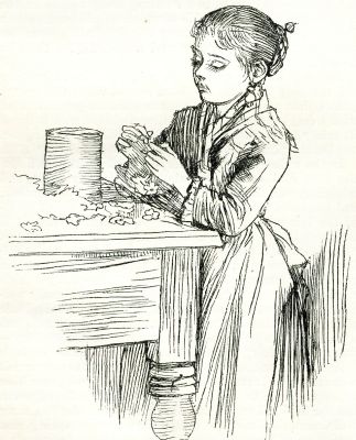 Tommy Tucker lives on a "farm" in the city of New York, near the Central Park. Some people make fun of Tommy's way of living, and call his place the "sunken lots," and say his family are squatters; but it makes very little difference to Tommy what remarks were made about his home or his people, so long as they were happy. And they were happy for a very long time, so happy that they didn't know what it was to be miserable, and it makes a wonderful difference to be able to tell one from the other. Up to the beginning of this winter they had the longest run of luck on record in any family in that neighborhood. A long while since, a horse had been turned out to die in a lot near the Tucker's. It wasn't such a very old horse, but it was dreadfully sick, and something was[Pg 322] the matter with its windpipe, so that Mr. Tucker heard it wheezing away while he was at work on the farm. He had a very kind heart, and always did what he could for poor dumb creatures, as well as those that could tell what was the matter with them; and what with kind treatment and a wonderful skill Mr. Tucker had with animals, that horse came around so that you'd hardly know it from a spirited charger of Mr. Crœsus—a gentleman who lives up in that neighborhood. It grew so strong that it was able to drag a cart-load of vegetables down town to Mr. Tucker's customers, and Mr. Tucker was able to put another lot or two under cultivation. And if the lots were a little rough and sunken, it was very pretty to see them full of "green things a-growing." Up to this last winter there was almost always something to sell, and pretty soon after Mr. Tucker cured his horse he got a cow. She wasn't a first-class cow when Mr. Tucker first traded off some pigs for her, and gave some silver to boot out of Mother Tucker's stocking. What little milk she had seemed to be turned to gall, and even that couldn't be got from her until she was tied to the side of the house; then she would have kicked the whole mansion down if it hadn't been founded on a rock, like the wise man's house Mr. Tucker read about in the Bible. Mr. Tucker and Tommy think there are only two books worth reading in the whole world: one is the Bible, and the other is Robinson Crusoe. Tommy hadn't minded depending on his goats for milk, because it seemed so much like Crusoe's way of living; but Mrs. Tucker and Tommy's three little brothers liked cow's milk the best; for one thing, there was so much more of it, and Tommy's three little brothers had such excellent appetites. For Mr. Tucker's wisdom extended to the udders of the cow, and pretty soon she was almost as good as an Alderney cow around the corner, so called, Mr. Tucker said, because she belonged to an Alderman.