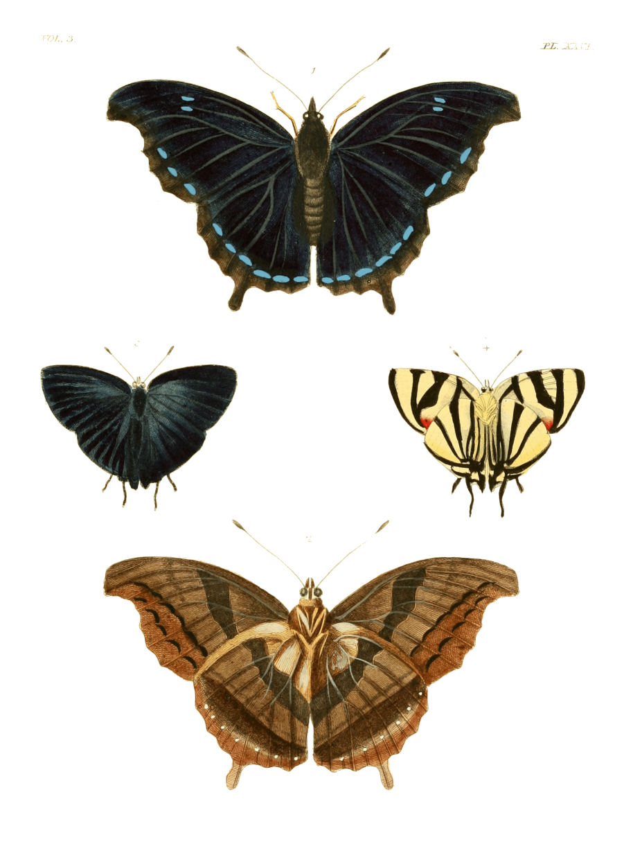 This magnificent butterfly is so exceedingly rare that M. Boisduval, whose knowledge of the European Collections is very extensive, questions whether there exists any other specimen than that originally figured by Drury. Mr. Jones also, whose splendid Collection of Drawings are so frequently quoted by Fabricius, copied this insect, figuring both the upper and under sides, which figures have been lately published by Mr. Donovan in his Naturalist's Repository. Mr. Donovan also adds, that from the manuscripts of Mr. Drury, "we find that he received this insect in 1775, from Mr. Smeathman, an assiduous and very intelligent naturalist stationed at Sierra Leone."