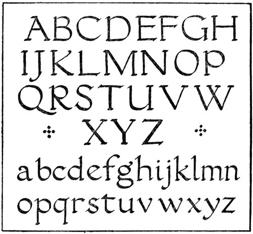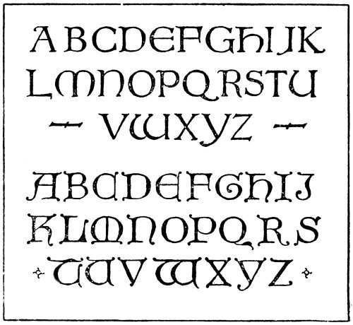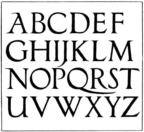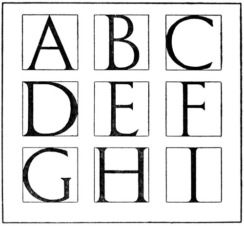 In fact, lettering enters so largely into decorative design that the study of some of the fine forms of lettering is of paramount importance to any artist who desires that the lettering that he uses should be of10 good construction. So many drawings have been spoiled through the introduction of weak and badly formed lettering that the need for training the student to produce lettering that is well-finished and of good form should be obvious to everyone.